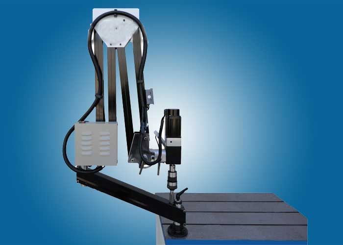 1、微电脑控制,扭矩大小可调,盲孔不断丝锥:可根据攻丝的大小自行调节扭矩,加上扭力夹头过载保护,双重保护,不断丝锥;主轴在半径1200/2000MM内任意移动。