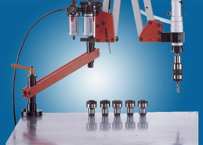 气动攻丝机较重的工作物不需要定位装置或移动,装加万向头可轻松搞定。定位迅速快和较高的切削速度,增加生产量,筒夹带过载保护装置,丝攻损伤较少,螺牙精度高。